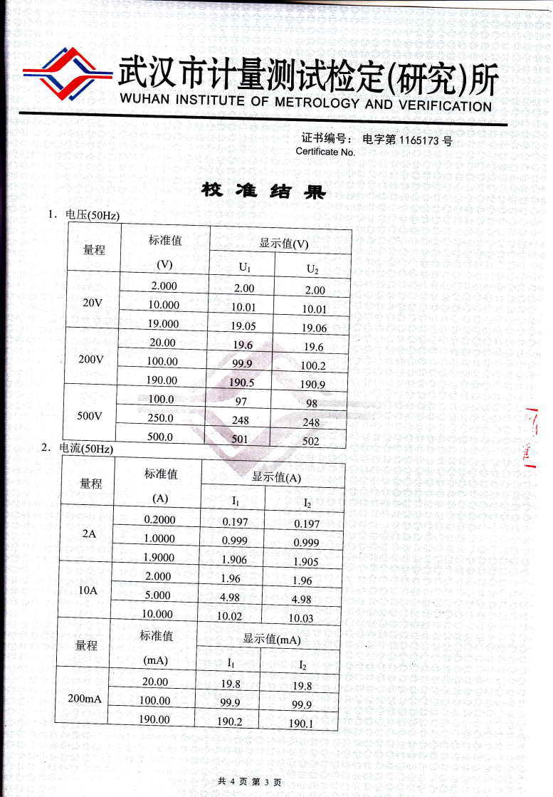| 功率測量 | 5V~500V/1.5mA~10A | 0.1W | ≤±1.0% | |