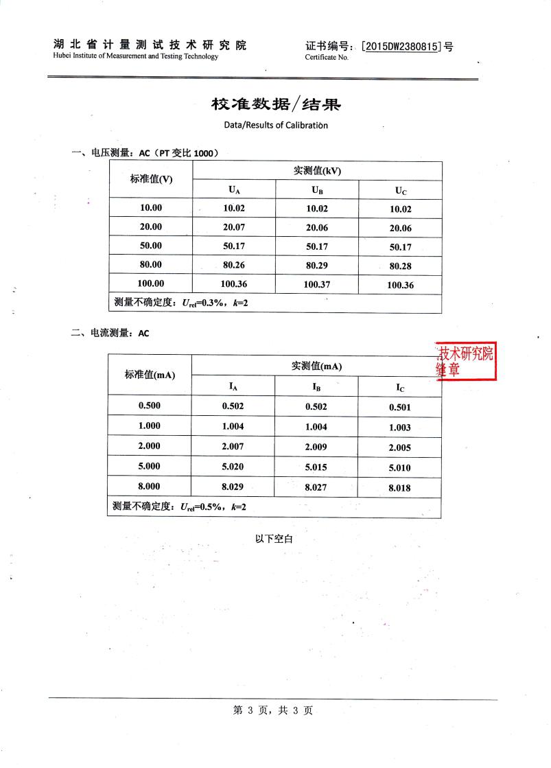 泄漏電流:全電流波形、基波有效值、峰值。 泄漏電流阻性分量:波形 1、3、5、7、9次有效值。 正峰值Ir+ 負(fù)峰值Ir-。 容性電流基波。 電壓:電壓波形、電壓有效值。 相角差、功耗。 |