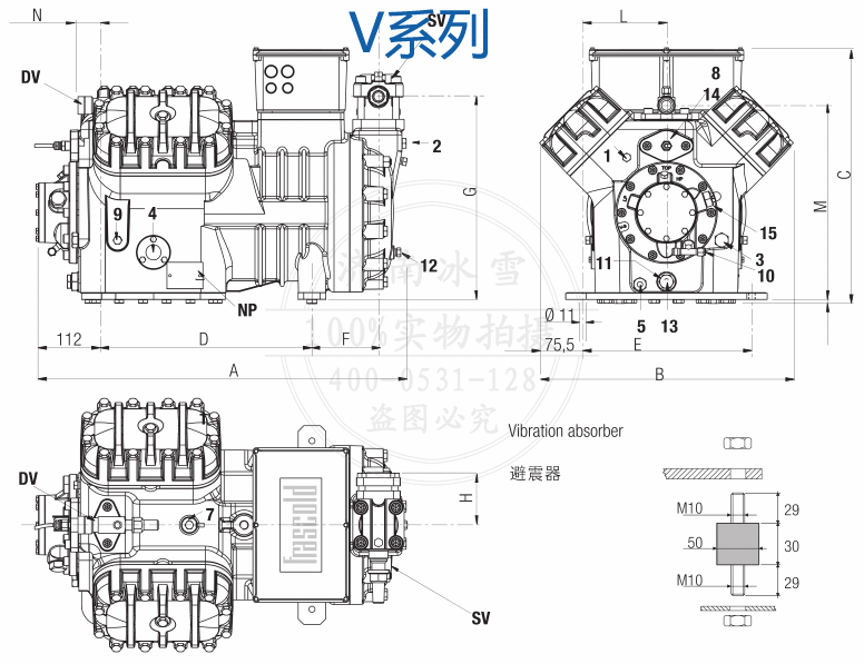 (7)包含截止閥、冷凍油和橡膠減震墊的凈重